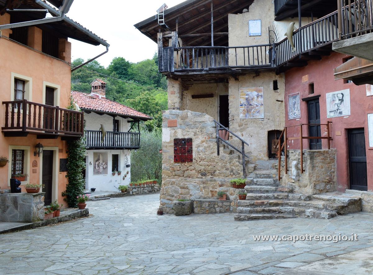 Una piccola frazione dove troviamo una galleria d'arte all'aperto; su ogni casa, in ogni angolo possiamo notare affreschi, dipinti a muro, sculture in rilievo e pittoreschi angolini. Un vero museo insomma a cielo aperto che rende il piccolo borgo unico nel suo genere. Fotografie di Camilla B.
